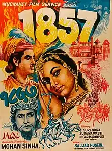 1857 is a 1946 Indian Bollywood film. It was the fifth highest grossing Indian film of 1946.[1] The film was directed by Mohan Sinha for Murari Pictures. The story was by M. Zahur with screenplay and dialogue by Safdar 'Ah'. The film starred the singer-actor pair of Surendra and Suraiya,[2] along with Wasti, Nigar, Munshi Khanjar, Madan Puri.