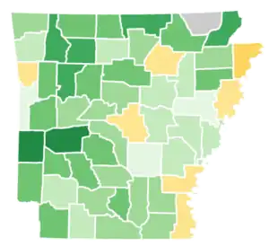 Arkansas was won by the 14th Vice President of the United States John C. Breckinridge (SDKentucky), running with Senator Joseph Lane, with 53.06% of the popular vote, against Senator John Bell (CUTennessee), running with the Governor of Massachusetts Edward Everett, with 37.05% of the popular vote and Senator Stephen A. Douglas (DIllinois), running with 41st Governor of Georgia Herschel Johnson, with 9.89% of the popular vote.