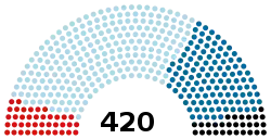 At the elections three parties ran for the seats; Deák Party, the supporter of the compromise, the Left Centre, partially opponents of it and the Far-Left opposing the treaty entirely. Finally the Deák Party won the 55.95% of the seats.