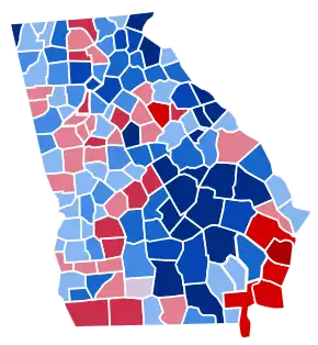 This was the last time the Republican candidate carried Greene, Fannin, and Pickens county until 1884; the last time they carried Polk, Haralson, Thomas, and Clay counties until 1896; the last time they carried Gilmer and Dawson counties until 1904; the last time a Republican carried Fulton county, home to Atlanta, and Clayton County until 1928; the last time they carried Bryan, Charlton, Lowndes, Harris, Houston, Putnam, Pike, and Fayette counties until 1964, and the last time they won Coweta, Meriwether, Butts, Newton, and Clarke counties until 1972, when Richard Nixon swept every county in Georgia.[4]