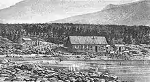 September was occupied by unloading the Vire, erecting several prefabricated buildings and constructing a 20 m stone jetty. Pens were built for the sheep and pigs brought as food. On 22 September one of the technicians, Paul Duris, died of typhoid fever and was buried on the point opposite Venus Bay. The encampment was ready for occupation on 1 October. From mid October until mid November the Vire was away and the expedition members filled their time testing their equipment and repairing that which had been damaged on the outward voyage. Filhol collected natural history specimens and observed the wildlife. The weather was not helpful; the expedition endured a series of storms which caused damage to the buildings.[1]