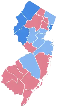 | Passaic | 5,304 | 48.15% | 5,708 | 51.82% | 3 | 0.03% | -404 | -3.67% | 11,015 |