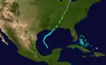 On September 8, the fourth tropical storm formed in the southwestern Gulf of Mexico northwest of Campeche. After tracking to the northeast, it made landfalls near New Orleans, Louisiana, and near the Louisiana-Mississippi state lines as a moderate tropical storm. On September 13 the storm became extratropical over Tennessee, and lost its identity on September 17 near Greenland.