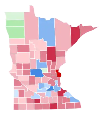 | Kandiyohi | 1,341 | 50.93% | 391 | 14.85% | 601 | 22.83% | 300 | 11.39% | 740[lower-alpha 2] | 28.10% | 2,633 | KD |