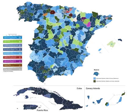 - ↑ "Real decreto declarando subsistente la división territorial para elecciones de Diputados á Cortes en las islas de Cuba y Puerto Rico, establecida por Real decreto de 18 de Diciembre de 1890" (PDF). Gaceta de Madrid (in Spanish). Agencia Estatal Boletín Oficial del Estado (363): 964. 28 December 1892.