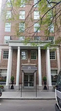 18 Gramercy Park is a 19-story residential building in Manhattan, New York City, United States. Built as a hotel in 1927 and designed by the architectural firm Murgatroyd & Ogden,[1] it was a women's temporary residence owned by The Salvation Army from 1963 to 2008. It was then known as the Parkside Evangeline.[2] In 2010, The Salvation Army sold the building to Eastgate Realty for US$60 million.[2][3] The investors were the Zeckendorf family and Israeli billionaire Eyal Ofer.[4][5] In 2012, the building was redesigned by Robert A.M. Stern Architects as a luxury 16-unit condominium building.[1][6]