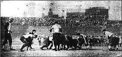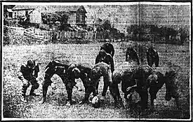 As losses mounted during the season, friction began to occur between Coach Collier and the team and Collier almost quit the team. Fans did not show up to the games as expected leading to small gate receipts, financial trouble, and concerns the team would not be able to fulfill Collier's contract.[12] Collier agreed to coach the team through Thanksgiving. Captain Yow left the team following the game against Sewanee on doctor's orders due to rheumatism.[13][14] Manager Neal left the team–under the pretense of health concerns–and an election for a new manager was held, eventually electing Andrew Pittman.[12][14][15] To compound the financial woes, many fans were able to watch Tech's final match against Davidson without having to pass through the ticket line, causing gate receipts to be disappointing.[16]