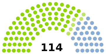 All 114 seats in the Storting 57 seats needed for a majority | |||||||||||||||||||||||||||||||||