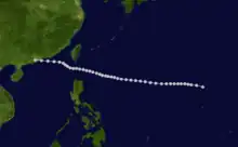 - ↑ Minimum pressure is only representative of observed values in Hong Kong; the storm was likely strong while over open water earlier in its track.