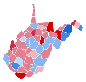 | Wetzel | 2,235 | 42.23% | 2,874 | 54.31% | 96 | 1.81% | 85 | 1.61% | 2 | 0.04% | -639 | -12.07% | 5,292 |