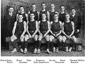 The 1912–13 season saw yet another head coach arrive in Champaign-Urbana to work with the Illinois Fighting Illini men's basketball team. Ralph Jones left an impressive legacy behind in West Lafayette, Indiana where he was head coach of Purdue for three years. During his tenure at Purdue, Jones compiled an impressive record of 32 wins with only 9 losses resulting in two conference championships. Jones was credited by some with originating the fast break in basketball.[1] After leading the Fighting Illini to two additional conference championships and one national championship, Jones left to coach at Lake Forest Academy. In addition to coaching basketball, Jones was head coach of the Chicago Bears from 1930 to 1933, where, among other achievements, he was credited with the revival of the T-formation and the use of a man in motion to throw off the defense.[2]