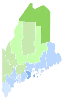 This was the only state that Wilson won in either of his two victories that would never support fellow Democrat Franklin D. Roosevelt in any of his landslide victories in the 1930s and 1940s.[1] Lincoln County and Waldo County voted Democratic for the first time since 1880. Androscoggin, Cumberland, Hancock, Knox, Sagadahoc, Washington, and York counties voted Democratic for the first time since 1852.