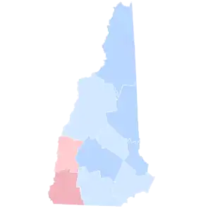 Wilson won New Hampshire by a narrow margin of 2.05 points, becoming the first Democratic presidential candidate since New Hampshire native Franklin Pierce in 1852 to win the state or populous Hillsborough and Strafford Counties. He was the first Democrat since Grover Cleveland in 1892 to carry any of New Hampshire's counties, the first since Cleveland in 1888 to carry Merrimack and Rockingham Counties, the first to win Belknap County since Cleveland in 1884, and the first to win Grafton County since Winfield S. Hancock in 1880.[1]