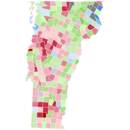 - ↑ Because Roosevelt finished ahead of Wilson in Vermont as a whole, all margins give are Taft minus Roosevelt unless stated in the total for the county in question.