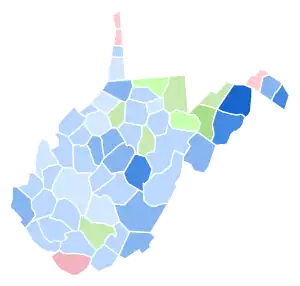 - ↑ Because Roosevelt finished ahead of Taft in West Virginia as a whole, all margins give are Wilson minus Roosevelt unless stated in the total for the county in question.