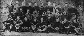 Coach John Heisman's backfield used the pre-snap movement of his "jump shift" offense. The team's captain was Froggie Morrison,[note 1] Tech's first great quarterback.[3] Fullback Tommy Spence was a future World War I casualty, and halfback Wooch Fielder was later a prominent figure in World War II.