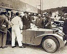 Earlier, in private practice, Léonard's Chenard-Walcker collided with a lorry coming away from the Pontlieue hairpin but was not badly damaged.[7] The Sunbeams developed issues and were sent to the Talbot sister-factory in Paris for repair, returning in time for the race.[11] Then tragedy struck on Friday evening. André Guilbert, a mechanic for Reval, was testing one of the cars when he hit a delivery van head-on when exiting the Pontlieue hairpin. He was taken to hospital with critical leg injuries.[3][19][6] On Saturday morning Oméga-Six company owner Gabriel Daubech withdrew his three cars. Team driver Jacques Margueritte had trialled two of the cars and picked up significant engine issues.