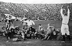 The game made its radio broadcast debut, with Charles Paddock, a sports writer and former Olympian track star, at the microphone.[3] Coach Wade was later inducted into the Rose Bowl Hall of Fame in 1990.[4]