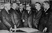 After Thompson beat Deneen's favored candidate in the primary Deneen backed Thompson in the general election.[38] Martin Walsh, who had run against Dever in the Democratic primary, served as a stump speaker for Thompson.[71] Thompson was also endorsed by Illinois Attorney General Oscar E. Carlstrom, Illinois Secretary of State Louis Lincoln Emmerson, Illinois Lieutenant Governor Fred E. Sterling, Cook County Sheriff Charles E. Graydon, Cook County Coroner Oscar Wolff and Chicago Postmaster (and 1923 Republican mayoral nominee) Arthur C. Lueder.[72][73][74] Thompson also received a last-minute endorsement from Illinois Governor Len Small.[75]