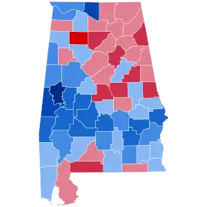 | Cullman | 1,574 | 34.72% | 2,959 | 65.28% | 0 | 0.00% | -1,385 | -30.56% | 4,533 |