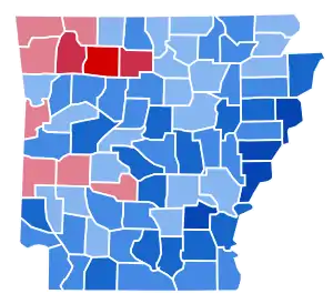 | Arkansas | 1,491 | 58.59% | 1,046 | 41.10% | 8 | 0.31% | 445 | 17.49% | 2,545 |