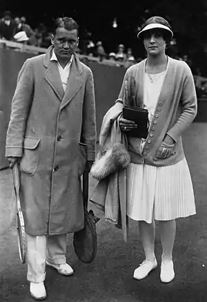 ![]() Vincent Richards, the defending 1930 Pro World Champion after having defeated Karel Koželuh for the title, and Helen Wills, the top ranked amateur female player of 1931[1] | |