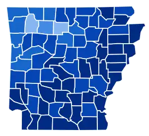 | Arkansas | 2,867 | 84.45% | 494 | 14.55% | 19 | 0.56% | 14 | 0.41% | 1 | 0.03% | 2,373 | 69.90% | 3,395 |