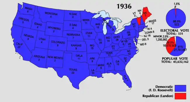 - ↑ "1936 Presidential General Election Data - National". Retrieved April 8, 2013.