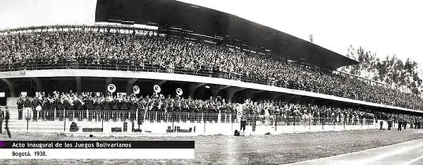 The I Bolivarian Games (Spanish: Juegos Bolivarianos) were a multi-sport event held between August 6–22, 1938, in Bogotá, Colombia, at the Estadio El Campín, for the city's 400th anniversary. The Games were organized by the Bolivarian Sports Organization (ODEBO).