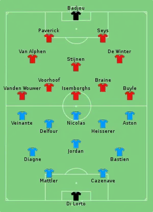 The hosts took the lead with only 35 seconds on the clock thanks to a shot from close range by winger Émile Veinante. France doubled their advantage soon after, but the lead was halved before the interval thanks to Hendrik Isemborghs, who connects with a free kick from Bernard Voorhoof. In the second half, Jean Nicolas got his brace, sealing the victory for France.[2]