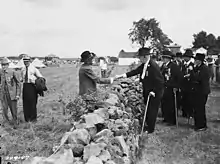 The 1938 Gettysburg reunion was an encampment of American Civil War veterans on the Gettysburg Battlefield for the 75th anniversary of the Battle of Gettysburg. The gathering included approximately 25 veterans of the battle[3]:72 with a further 1,359 Federal and 486 Confederate attendees[4] out of the 8,000 living veterans of the war.[5] The veterans averaged 94 years of age.[6] Transportation, quarters, and subsistence was federally funded for each veteran and their accompanying attendant.[7] If an attendant was needed it was provided.[1][8] President Franklin D. Roosevelt's July 3 reunion address preceded the unveiling of the Eternal Light Peace Memorial; a newsreel with part of the address was included in the Westinghouse Time Capsule for the 1939 New York World's Fair.