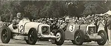 Reg Nutt's No 2 Day Special and Colin Dunne's No 3 MG K3 Magnette prior to the start. Nutt established the fastest race time and Dunne set the fastest lap of the race