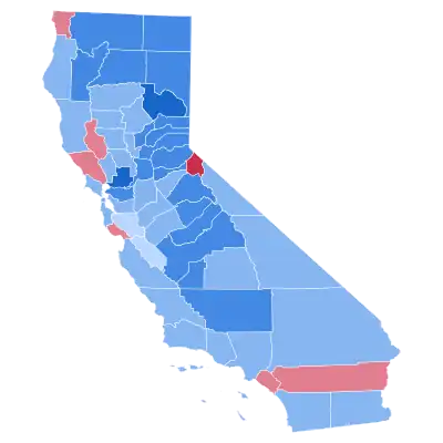 This remains the last election when the Democrats have won Sutter County, which as of the 2020 presidential election,[2] stands as the longest run voting for one party by any California county.[3] Mono County would not vote Democratic again until John Kerry in 2004,[4] and Orange County would not vote Democratic again until Hillary Clinton in 2016.