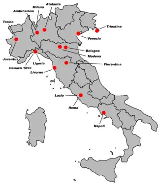 | 11 | Liguria | 30 | 10 | 7 | 13 | 39 | 56 | 0.696 | 27 | |