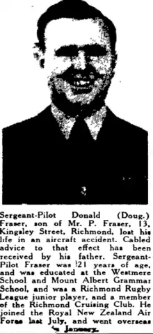 206. "Sergeant-Pilot Donald (Doug) Fraser". Auckland Star, Volume LXXIII, Issue 144. 1942-06-20. p. 6. Retrieved 2022-04-19.