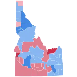 | Twin Falls | 6,128 | 43.41% | 7,946 | 56.29% | 36 | 0.26% | 6 | 0.04% | -1,818 | -12.88% | 14,116 |
