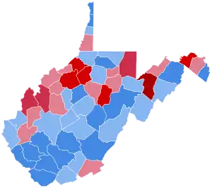 | Upshur | 2,026 | 27.53% | 5,332 | 72.47% | -3,306 | -44.93% | 7,358 |