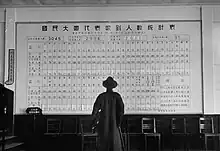 According to Central News Agency, the official broadcaster, and Ta Kung Pao, there were around 250 million of eligible voters, compared to a total population of 461 million.[13] Official newspaper Central Daily News, however, gave the number of voters at 350 million.[10] The Government reported the turnout at 20 million,[14] despite neutral observers doubted whether the total reached 10 million.[15] With the government reported figures, the turnout was at 8%.