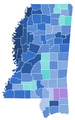 ![]() ![]() Wright: 30–40% 40–50% 50–60% 60–70% 70–80% 80–90% 100% Johnson: 40–50% 50–60% Byrd: 40–50% | |||||||||||||||||||||