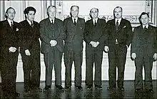 The Ottawa delegation, dominated by pro-confederates including Smallwood, preferred a union with Canada to independence.[8] The talks between them and Ottawa began on June 24, 1947 with the goal being to stay in Ottawa as long as needed to negotiate good terms for Newfoundland's entry. Ottawa was reluctant at first because they felt that the delegation was not an official representation of the Dominion of Newfoundland, but the Federal Cabinet finally decided to begin negotiations on July 18.[8] By mid-August, the agreement of draft terms was nearly complete. However, with the death of Frank Bridges, Prime Minister William Lyon Mackenzie King's minister from New Brunswick, negotiations effectively ended. King refused further discussions until New Brunswick had representation,[8] and so the delegation headed back to St. John's.