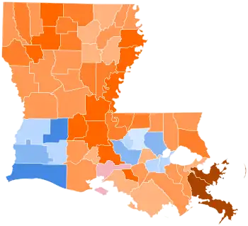 | Plaquemines | 77 | 2.78% | 90 | 3.24% | 2,597 | 93.62% | 10 | 0.36% | -2,507[lower-alpha 3] | -90.37% | 2,774 |