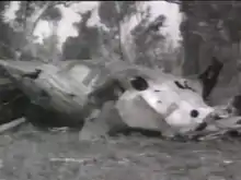 Investigators believed the aircraft captain survived for a short time after the crash. His body was a short distance away from his seat and both were a few metres ahead of the wreckage where they had been thrown after the nose of the aircraft was split open in the impact with a large tree. The seat belt had not broken, but it had been undone.[3] The captain's tunic was pulled up over his head as though to protect his face from the heat of the nearby inferno.[16] Investigators believed he survived the crash and undid his seat belt to drag himself away from the fire.[33] His body was not burnt, but autopsy showed both his legs were broken and he died from a fractured skull.[3][10][34]