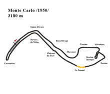 The 1950 Monaco Grand Prix, formally titled the Prix de Monte-Carlo et XIe Grand Prix Automobile,[3] was a Formula One motor race held on 21 May 1950 at Monaco. It was race two of seven in the 1950 World Championship of Drivers. The 100-lap race was held at an overall distance of 318.1 km (197.1 mi) and was won by Juan Manuel Fangio for the Alfa Romeo team after starting from pole position. Alberto Ascari finished second for Ferrari and Louis Chiron finished third for Maserati. It was also the first race for Ferrari in Formula One.