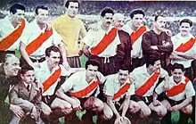On the other hand, River Plate, coached by José María Minella, had won the Primera División title in 1952 with 40 points in 30 matches played.[7] Some players that had been part of legendary team La Máquina (such as Ángel Labruna, and Félix Loustau) were still part of the squad. Uruguayan striker Walter Gómez (who was in River since 1945) had consolidated as a keyplayer in the offensive line along with Labruna and Loustau.[8]