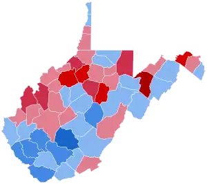 | Kanawha | 54,540 | 48.96% | 56,861 | 51.04% | -2,321 | -2.08% | 111,401 |