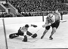 The Soviets did not have the Swedish national anthem ready for the gold medal ceremony. To compensate for this, the Swedish players decided to sing the anthem over the stadium's PA system. However, few players knew the anthem by heart so they decided to play a little prank on the Soviets and instead sang the Swedish drinking song "Helan Går".[1] Swedish captain Lasse Björn later recalled the story of Marshal Zhukov, the Minister of Defence of the Soviet Union, standing to attention for a simple Swedish drinking song.[2]