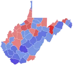 | Wetzel | 4,394 | 47.08% | 4,939 | 52.92% | -545 | -5.84% | 9,333 |