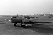 The aircraft involved was a Douglas C-47A Skytrain, that was manufactured in 1943 in Long Beach, California, by Douglas Aircraft Company.[6] From 1944, it flew in the United States Air Force with registration 316026 (43-16026). On 19 November 1951, the aircraft was due to fly from Erding, West Germany, to Belgrade, Yugoslavia with four American soldiers on board. They tried to avoid Hungary, which was part of the Eastern Bloc. That day, a strong southwest wind pushed the airplane towards the Hungarian border, and the pilots realised too late that they had arrived to the Mecsek mountains instead of the Yugoslav capital, where the air force tried to shoot it down, but without success. The airplane then turned back towards Yugoslavia, but was immediately fired upon (as an American border-crossing aircraft). From there it fled to Romania, and then returned to Hungarian territory. By this time the Soviet Union had also become aware of the case, and two Soviet MiG-15 fighter jets forced the military airplane to land at Pápa Air Base (the official reason given was that the Hungarians had requested the help of the Soviets stationed there because of "poor visibility"). The four soldiers on board were convicted, fined and expelled from Hungary, but the aircraft was confiscated. It was used by the Hungarian Air Force from 1952 to 1956 (with registration 026), but due to lack of documentation and spare parts it was out of the line, but it fitted in with the Lisunov Li-2s used by Malév, as they were manufactured by the Soviets under the Douglas DC-3 licence.[3][7]