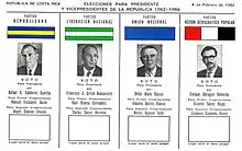 3. 1 2 3 4 5 6 7 8 Hernández Naranjo, Gerardo. "Reseña de las elecciones presidenciales de 1962" (PDF) (in Spanish). Archived from the original (PDF) on 16 February 2016. Retrieved 13 April 2016. {{cite journal}}: Cite journal requires |journal= (help)