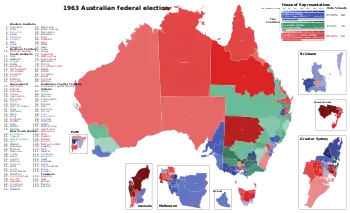 The 1963 Australian federal election was held in Australia on 30 November 1963. All 122 seats in the House of Representatives were up for election. The incumbent Liberal–Country coalition government, led by Prime Minister Sir Robert Menzies, won an increased majority over the opposition Labor Party, led by Arthur Calwell. This was the only time that a Federal Government won a seventh consecutive term in office.